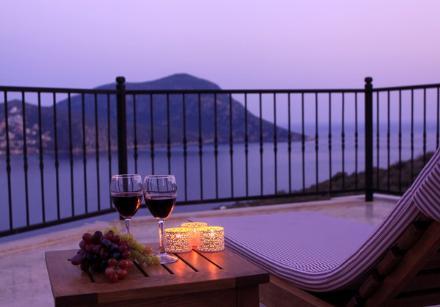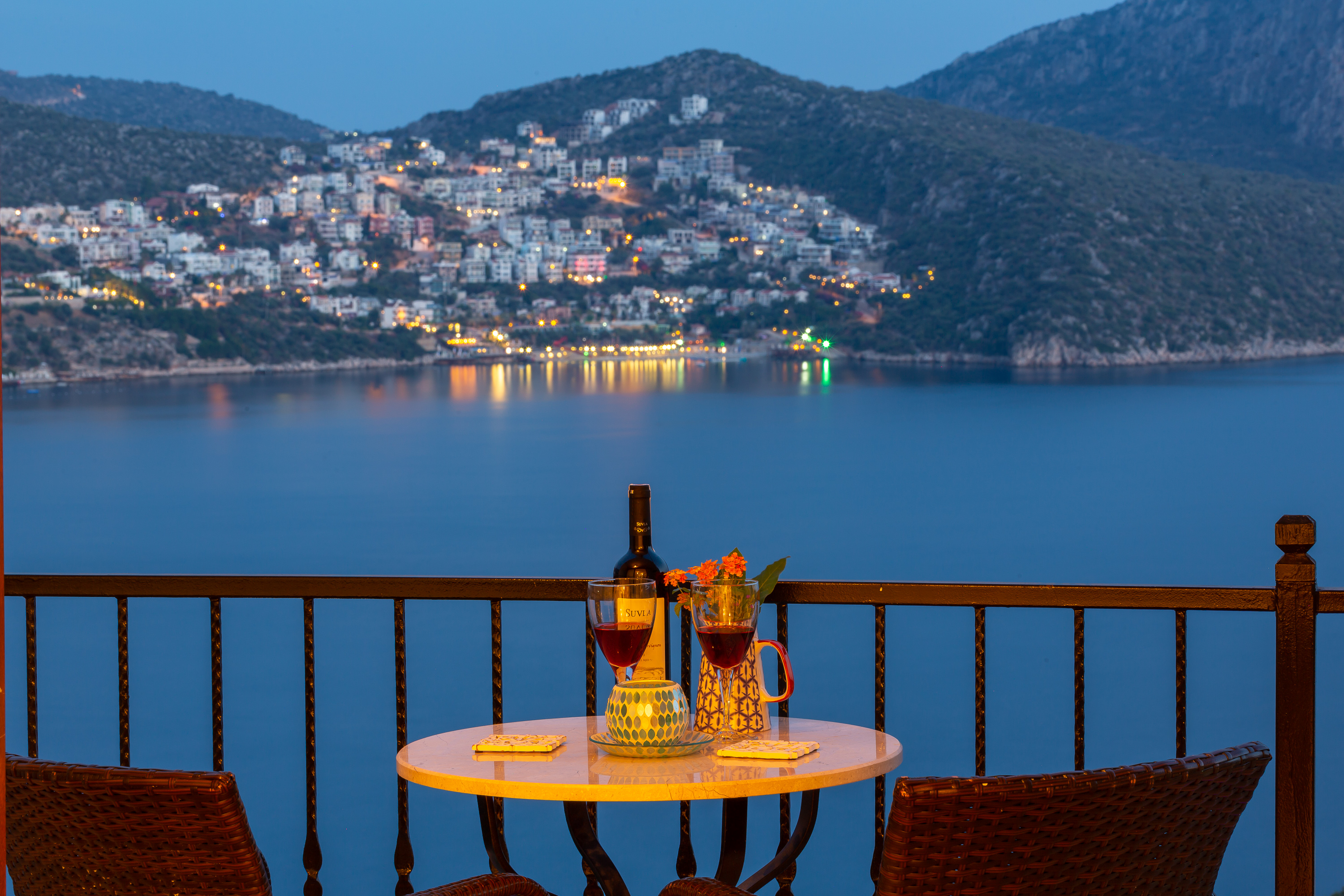 Villa Amethyst sleeps 8 in spacious en-suite bedrooms, each with their own sea-view furnished balcony, perfect for enjoying the stunning vistas of Kalkan Bay and beyond.
