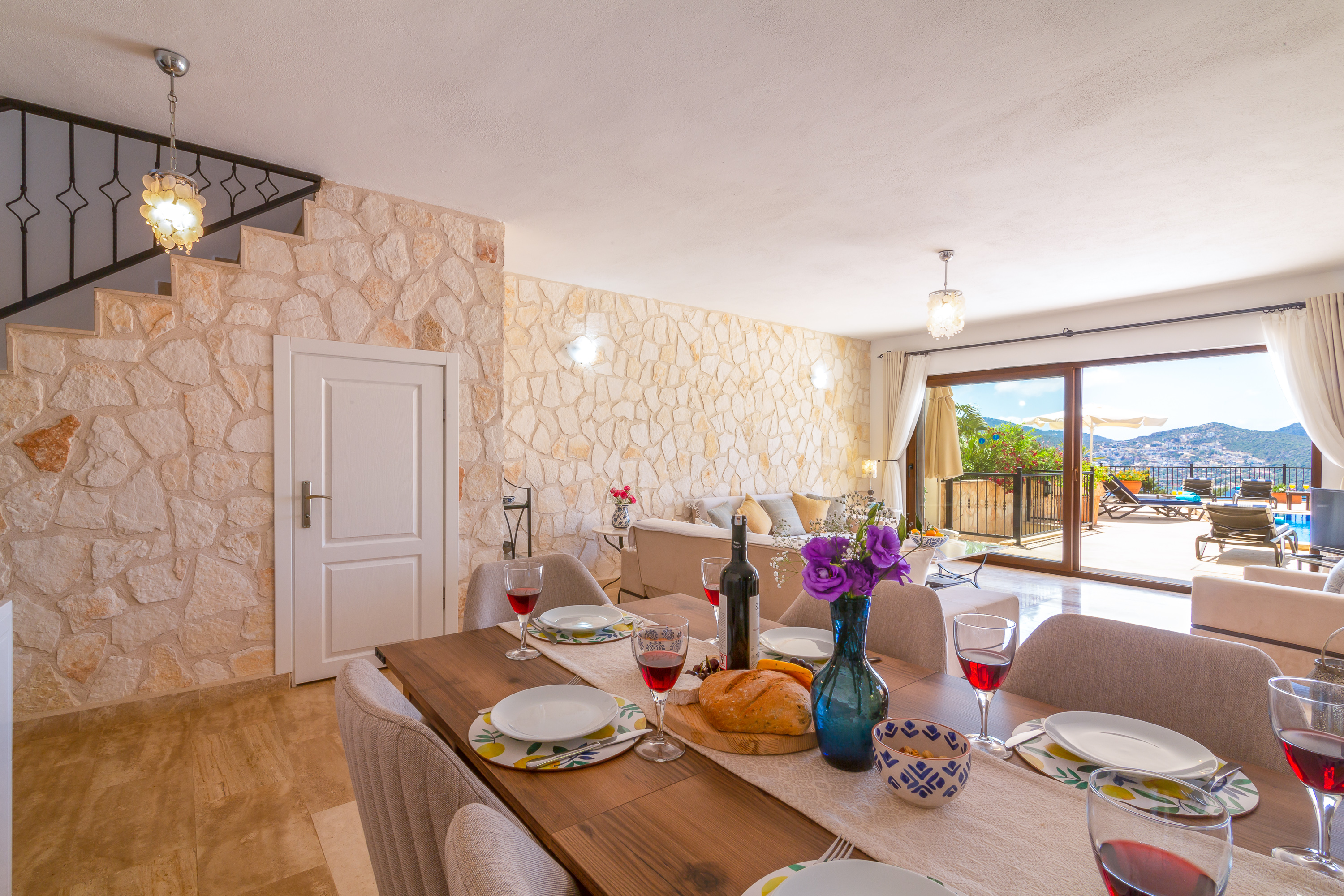 Spacious open plan living /dining area with TV complete with Amazon fire-stick enabling access to a wide range of English TV channels . This area leads out onto the pool terrace and outdoor dining area.